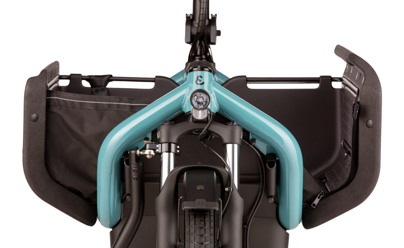 Flexible and versatile. The Riese & Müller Carrie2 City eBike boasts an impressive 200 kg carrying capacity and comes standard with a 30 cm × 45 cm front cargo box, along with a range of practical accessories for everyday urban use.