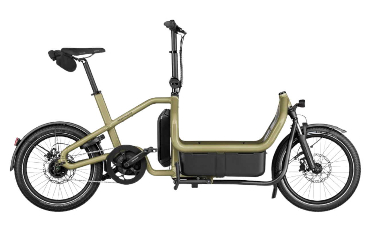 An Easy-to-Manoeuvre Front-Loader. The Riese & Müller Carrie2 electric bike is perfect for front-loader enthusiasts who navigate tight spaces and narrow city streets. Its compact 209 cm length, 200kg capacity and slim front-loader box allow you to manoeuvre easily like a standard bike while maximising cargo capacity. The "City" version is the most economical in the Carrie2 range and has the smooth, low maintenance Gates belt drive with simple Nexus 5-speed gears.